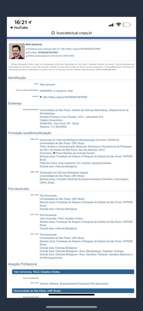 Currículo Lattes Atila Iamarino