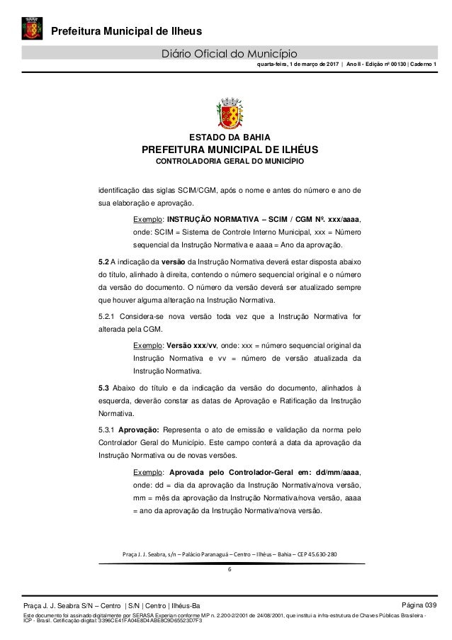 A presente instrução normativa integra o conjunto de ações de responsabilidade do chefe do poder executivo no sentido da implementação do sistema de controle interno do município sobre o qual dispõem os artigos 31 da constituição federal 59 da lei complementar nº 101 2000 e 64 da lei complementar estadual nº 202 2000 no caso de. Exemplo de instrução normativa é a in nº41 2018 do tst que foi criada com a finalidade de regular as regras processuais advindas com a reforma trabalhista. 6º a certidão de quitação de tributos e contribuições federais modelo aprovado pela instrução normativa do srf nº 82 82 e de emissão manual também abrangerá todas as contribuições administradas pelo departamento da receita federal. Um exemplo de ciclo de enchimento contínuo é um turno de produção usando o mesmo pessoal equipamentos e lote de gás a ser usado para envase.