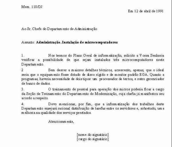 Modelo de memorando comercial. O memorando é um documento muito importante pois é uma espécie de gênero de texto que se constitui de características específicas para sua elaboração sendo muito utilizado como forma de comunicação entre unidades divisões áreas específicas e setores de uma determinada organização. São paulo 10 de janeiro de 2020.